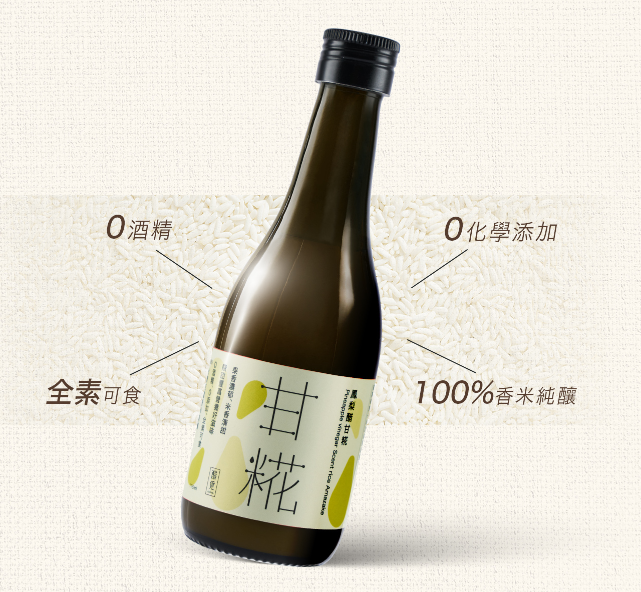 •嚴選南投八卦山土鳳梨釀製鳳梨醋,融合100%花蓮香米甘糀,