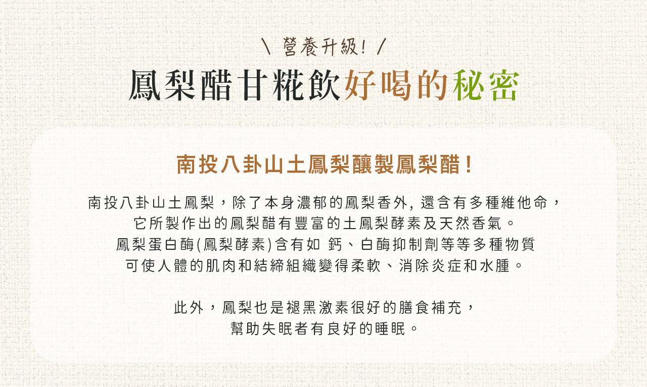 •嚴選南投八卦山土鳳梨釀製鳳梨醋