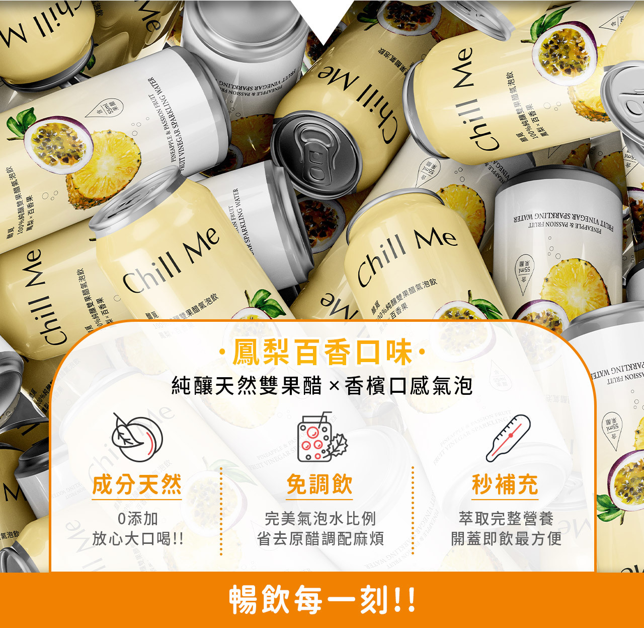 雙11【鳳梨百香】純釀雙果醋氣泡飲(330ml)12入x1箱